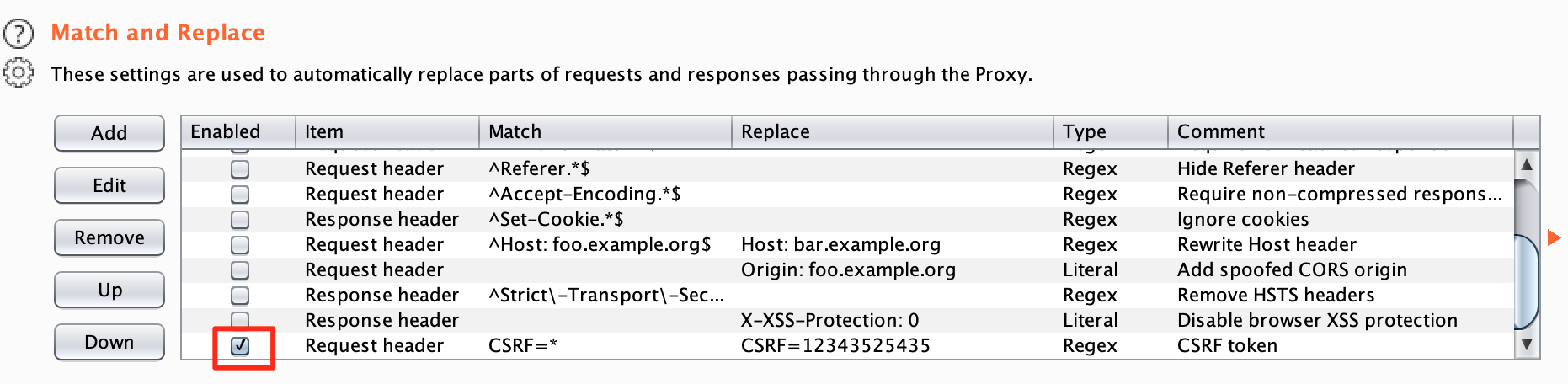 When this rule is active, click through the application and try to make changes. If you are able to make changes where a CSRF token is normally expected, investigate this further. It may be a vulnerability. To restore normal functionality, simply disable this rule.