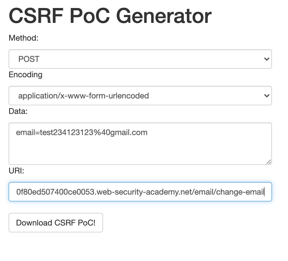 Which we can again try to enter in our CSRF PoC generator to prove impact.